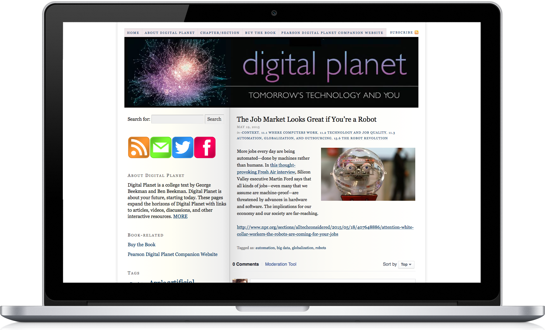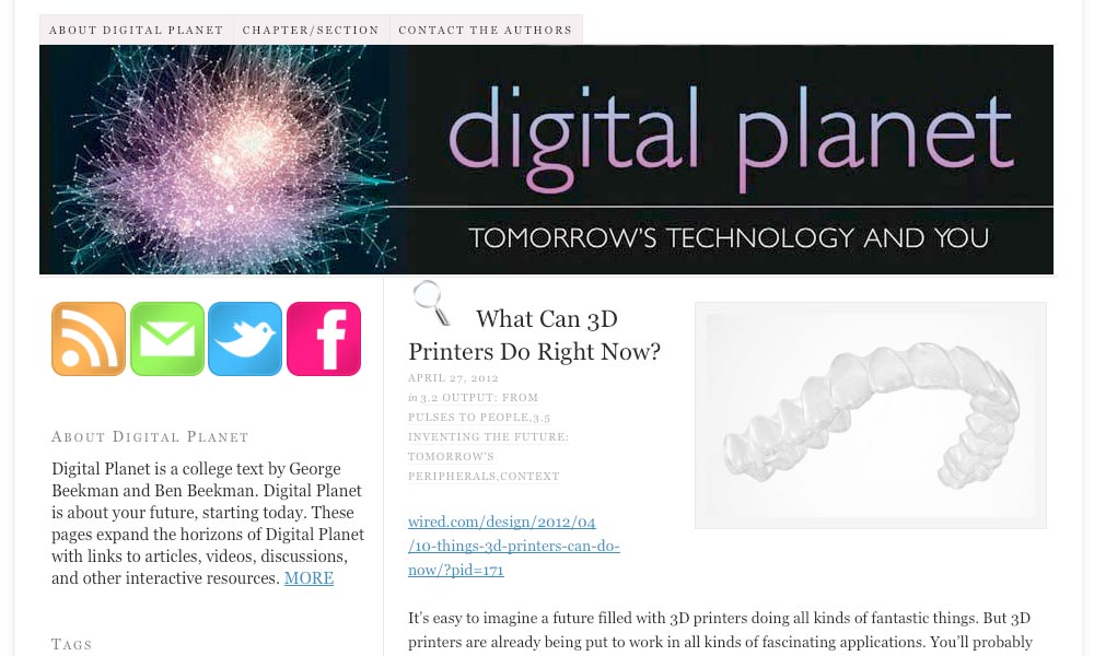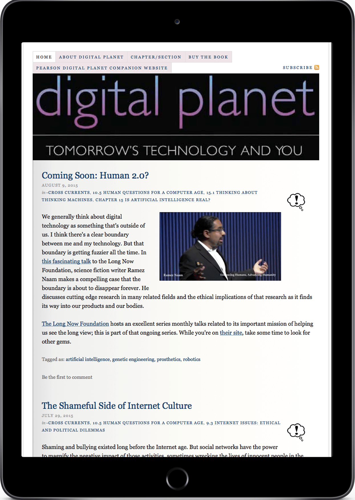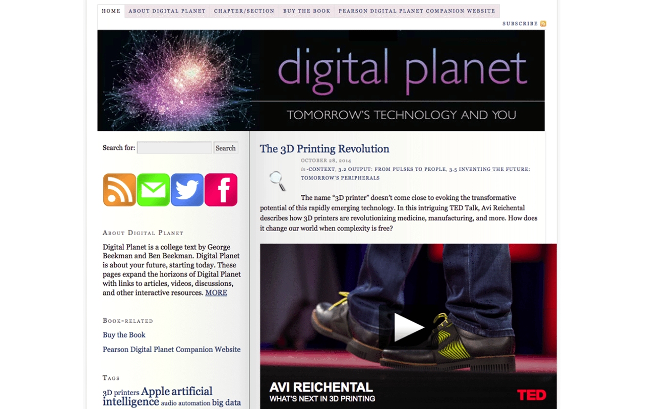 I developed this site to accompany the college text I co-authored of the same name. Technology moves faster than textbook revision cycles, and the site allowed us to update and supplement the subjects covered in the text. We categorized and tagged every post’s relationship to the book’s material, making it easy for students and instructors to update their knowledge with relevant news and trends.